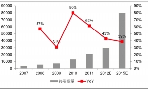 ●粗放式增长空间仍有4-5倍:公司目前经销商数量在330家,终端网点数量在2011年超过2.1万个,今年预计达到3万个。参考同样主打药店渠道的碧生源,我们认为可以预见的最终网点数量将超过12万个;