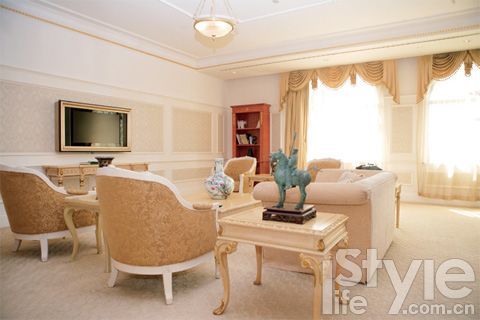 令人想举办下午茶的客厅客厅的面积相当于一般酒店普通套房的大小,绝对符合总统的气派。客厅中放置着雅致的欧式沙发,一侧的窗户面对着长安街,阳光透过窗户照进客厅内,在地毯上洒下斑驳。这样的气氛立刻让人联想到下午茶的起源——当时英国国王书房边上就设有类似的客厅,供大臣向国王汇报政务的间隙歇息,而客厅里总是备有茶水和点心。