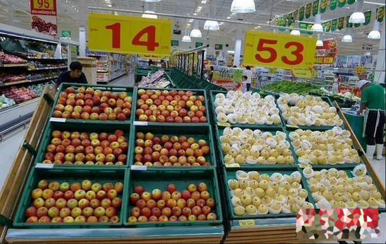 美国蛇苹果10铢一个 如果买一袋6个装是52铢,100人民币可以买54个。 美国蛇苹果10铢一个 如果买一袋6个装是52铢,100人民币可以买54个。