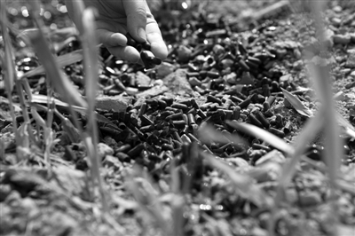 18日,西安市灞桥区枣园苏村无人居住的山坡上被人倾倒了大量的空胶囊。西安市灞桥区食品药品监督管理局工作人员表示经过分析,不排除是黑作坊生产的劣质空胶囊。执法人员已将胶囊壳封存,做进一步调查。董国梁 摄