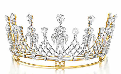1957年迈克·托德赠送给伊丽莎白·泰勒的钻石皇冠,约1880年制作,于2011年12月佳士得在纽约举办的“伊丽莎白·泰勒珍藏系列:传奇珠宝”拍卖专场上以422万余美元成交。该系列特辟网络拍卖专场,吸引了世界各地收藏爱好者的参与。
