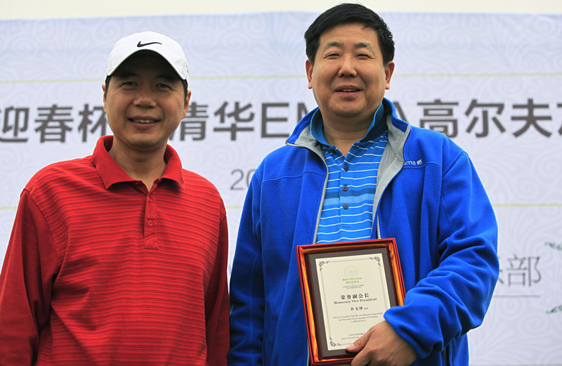 王勇博士为许文泽校友颁发清华EMBA高尔夫协会荣誉会长证书