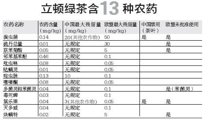 立顿绿茶被指含13种农药