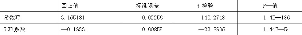 以下是黄金价格取对数后与实际利率r的回归方程和统计检验结果: