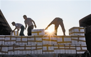 每天早晨,太阳刚刚升起,昆明市呈贡县沐村绿色食品有限公司里的工人就开始把打包好的新鲜蔬菜成箱地搬到长23米大货车里,每天往车里装满30吨菜需5小时左右。