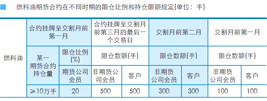 注:表中某一期货合约持仓量为双向计算,期货公司会员、非期货公司会 员、客户的持仓限额为单向计算;期货公司会员的持仓限额为基数。