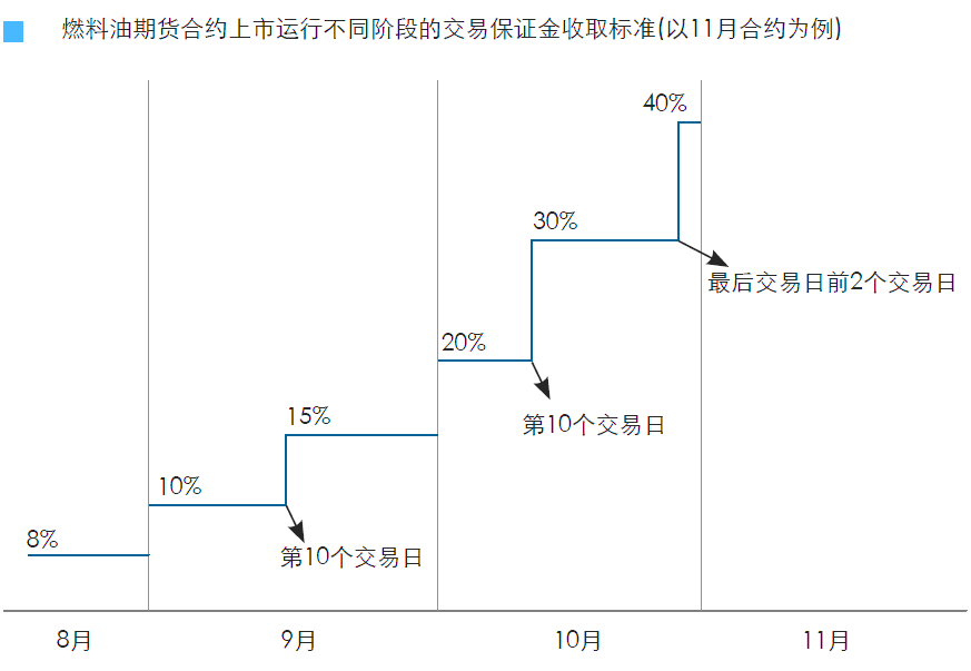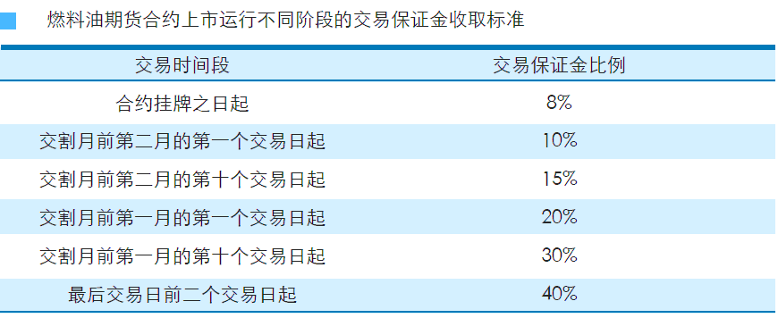 交易保证金是指会员在交易所帐户中确保合约履行的资金,是已被合约占用 的保证金。燃料油期货合约的最低交易保证金为合约价值的8%。