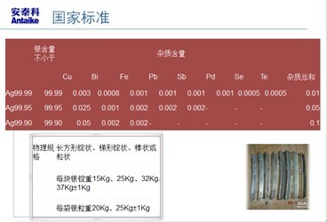生产出的白银的银锭,根据我国的国家标准主要分为三个品种,也就是市场上所知道的一号银,二号银和三号银,一号银指的是9999,二号银指的是9995,三号银指的是999,主要的区分是里面含杂质的不同。