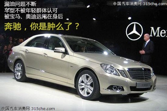 今年年初,奔驰E系的轿车车主庞先生在买车三个月半月后给汽车做保养时发现发动机缸体漏油。庞先生到奔驰北京中心进行协商要求换车,但该中心表示需要技术部评估,让庞先生等待答复。庞先生从一家4S工作人员处得知,和自己遭遇类似的车主还有很多。然而奔驰北京中心工作人员却称:目前手头没有相关投诉。无独有偶,一名北京车主在给爱车免费检测一天后,也出现了漏油现象。5月初,南京一名奔驰车主因漏油现象,除了北京、南京发生过漏油现象,温州、台州等诸多省市奔驰漏油的报道也屡见报端。从2011年初到2012年3月,12315申诉举报指挥中心收到多起关于奔驰豪车的投诉,投诉内容大多涉及质量、售后服务等。