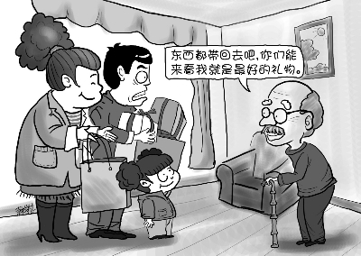 远在故乡的慈父慈母也多理解和心疼子女在外奔波劳碌的辛苦,让孩子们没有急事就不用回家。父母的善意让很多子女也找到了“非急事不回家”的理由,久而久之则在潜移默化中形成了“努力工作赚钱比回家探亲更为重要”这样的念头,结合社会上越来越重的竞争压力,愿意在空余时间回家探望老人的儿女不断减少。老人的“空巢”之痛是精神之痛,并不单纯是客观上的孤单,而是主观上的认为自己被遗忘不被重视的孤独,正是长久以来“工作胜父母”的念头及“没大事不回家”的现实让老人感到深深的孤独。(实习生 周卓男 整理)