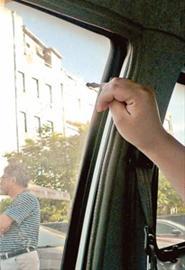 为了证实这一点,记者依照这条消息的提示,拔下司机座位上的头枕,用尖锐插头敲打玻璃。但是,效果看起来并不理想,虽然玻璃贴膜被严重刮破,但没有裂开的迹象。换上一位中年男子,即便他用插头敲击多次,玻璃仍纹丝不动。紧接着,一位20多岁的年轻男子自告奋勇上车实验,但试了好几次,还是无法将玻璃砸破。