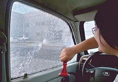 实验证实网购逃生锤砸车窗玻璃没坏锤坏了