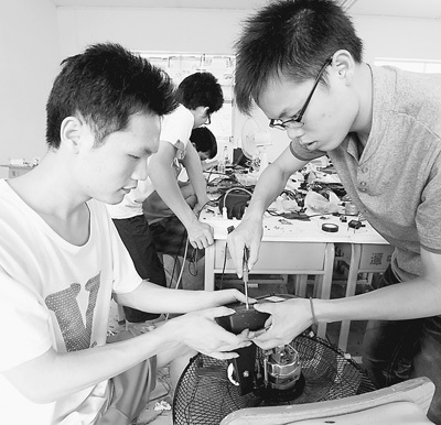 日前,广西科技大学(筹)暑期大学生社会实践科技维修服务队走进桂北革命老区——广西融安县潭头乡,开展义务免费维修家电活动,为老区群众解决生活中的难题。 谭凯兴摄