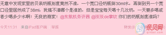 贝亲奶瓶被曝刻度不准 网友称其为无良商家(亲贝网配图)