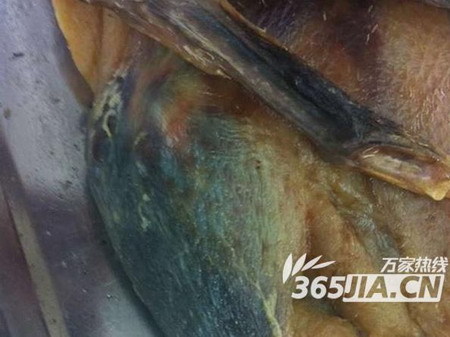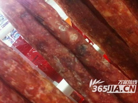 据王先生介绍,他本来准备买些腊肉回家做菜,但是找来找去也没看到腊肉的生产日期和生产厂家在哪里,不过王先生觉得腊肉这些东西本来就可以存放很久,所以也没有很担心质量问题。就在他准备挑选的时候,却看到有些腊肠和风干鸡有了黑色的霉点,这一下让王先生没有了食欲。王先生很郁闷的说到:“没有生产日期、产地、保质期也就算了,这都发霉了还在卖,太坑爹了,这根本就不把消费者的利益放在眼里。”