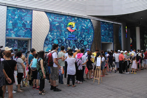 8月11日,丽水世博会闭幕的前一天,等待参观中国馆的游客队伍排成长龙。 摄影:人民网记者 马菲
