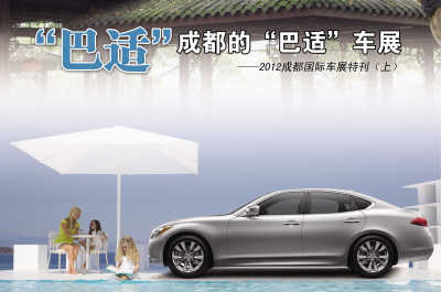 最后,回归正题,提前透露一下8月31日即将开幕的2012年成都车展的看点:东风标致的“E动战略”将发布最新动力总成技术;全新奔驰B级豪华运动旅行车将在成都车展上正式上市;备受关注的全新豪华3排7座SUV英菲尼迪JX将中国首演;与热播剧《北京青年》交相辉映的北京汽车限量版E系列将携手京东商城玩转网购;中华品牌“H”系列最新力作中华H230将于成都车展上面市……看点还不少,快让我们一起去蓉城“巴适”吧!