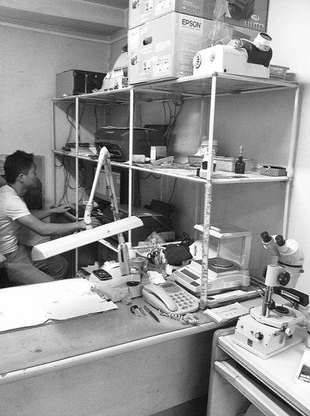 图为设在北京五寰珠宝市场一层的北京北大宝石鉴定中心检测室