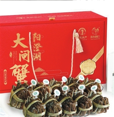 在阳澄湖大闸蟹的品牌实体店里,纸螃蟹的销售也如火如荼。王氏水产就针对中秋佳节特拿出畅销款做“感恩中秋,品质蟹礼”优惠活动。据了解,此款套餐原价1088元,内含4两公蟹3两母蟹各4只,以及品蟹配套,而优惠价只需680元/份,王氏水产北京总店和北京广渠门专卖店同步优惠。