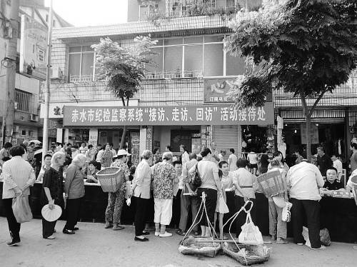 2011年8月8日上午,贵州遵义赤水市纪检监察系统“三访”活动首日,前来咨询、反映问题的群众络绎不绝。贵州省纪委供图