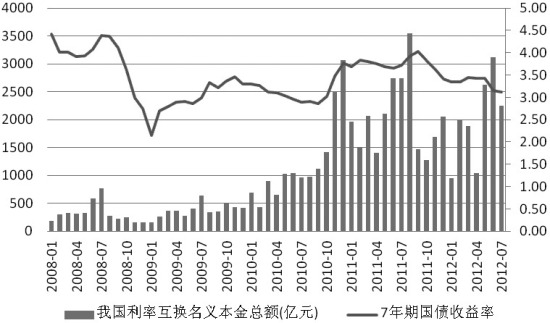 我国人民币利率互换交易从2006年2月开始试点,2008年2月开始正式实施交易。正式实施后,市场规模迅速增长,名义本金额从2008年的3875亿增长到2011年的24599亿,短短3年增长率超过500%。