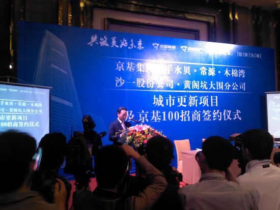 会上,陈华没有应记者请求接受采访,京基地产股份有限公司副总经理王雨光接受了媒体采访,他表示,目前集团融资来源主要是银行贷款和抵押贷款,京基100自持物业今年产生现金流15个亿左右,随着自持物业增加,现金流将递增。此次京基集团城市更新项目同时涉及罗湖、南山、宝安、龙岗四个区域,总体改造面积达到63.9万平方米,预计开发总量300万平米,是京基100大厦综合体总建筑面积的5倍,预计五个地块的改造投资额度将接近255亿元。王雨光表示,“资金不是很大的问题,预计拆迁需要1年半时间,然后才是大批量的资金投入,将分七八年投入。”
