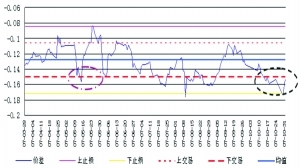 图4:07年2-10月宝钢武钢日价差及交易上下限