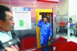 “感觉很奇妙,我很喜欢吃这里的蔬菜”,昨天17点,被“关”在“大铁皮屋”里30天的两名航天员中心研究员走出了密闭试验舱舱门(如图),这也标志着我国首次受控生态生保集成实验取得成功。舱内种的蔬菜不但可以吃,还能够提供氧气并吸收二氧化碳,尿液处理后还能浇灌蔬菜。这项实验意义非凡,为未来建设月球基地和登陆火星人员实现生命保障自给自足走出了第一步。