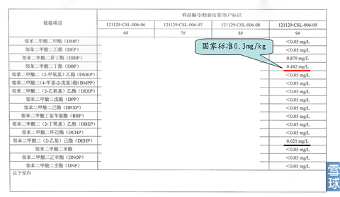 DBP与DEHP汇总对照表邻苯二甲酸二丁酯DBP国家标准为0.3mg/kg;邻苯二甲酸二(2-乙基)己酯DEHP: 国家标准为1.5mg/kg