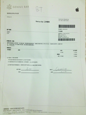 申请换货未成功,于是鲁小姐拿着手机,来到了王府井苹果专卖店。经过检修,苹果客服人员给出了书面回复。正是这份回复,让鲁小姐怀疑,她买到的是一个返修手机。也就是说,鲁小姐怀疑这个手机也曾经被卖给别人,出现故障后送回修理。修好之后,又卖给了她。