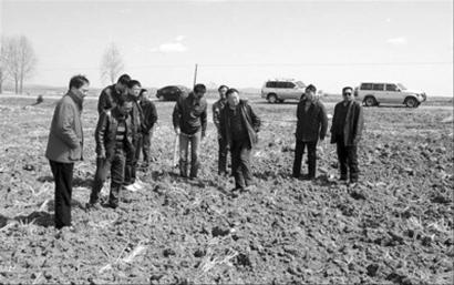 宋新华带领856农场24队的农户,来到8511农场实地查看修复土壤的对比情况856农场供图
