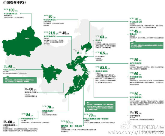 在这种背景之下,从沿海的上海、青岛、宁波,沿江的南京、洛阳,到内陆的乌鲁木齐,国内的PX版图不断扩张。