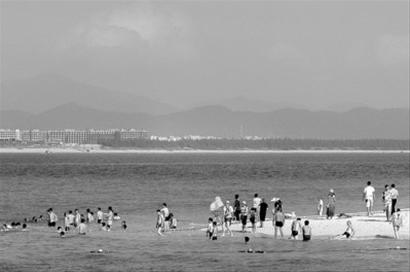 从三亚海滩边遥望,可见沿滩新建楼盘鳞次栉比