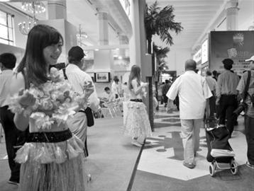 今年10月上海秋季房展上,海南一家海景楼盘请来模特跳起草裙舞吸引上海买家晚报记者 张骏斓 报道