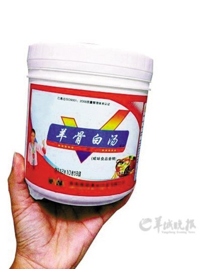 在第一家调味品店,店主向记者推荐了一瓶专用于各类火锅、肉汤的“浓白汤”,有2斤重,30元一瓶。“火锅店、羊肉汤店都用这东西,不用哪能熬出那么白的汤?”店主称,冬季是吃火锅和羊肉汤的旺季,自己每个月卖掉几十瓶。