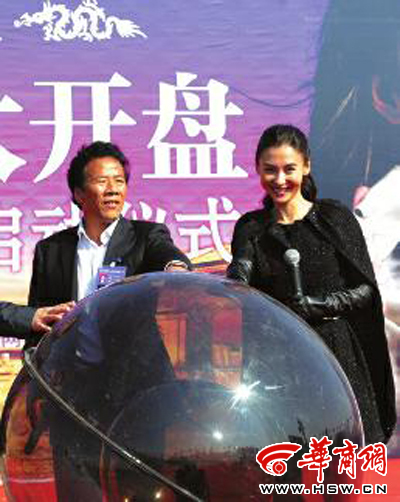 2011年10月18日,张柏芝出席开盘仪式,左边是陕西益丰置业发展有限公司董事长吴栓牢 本报资料照片记者叶原摄