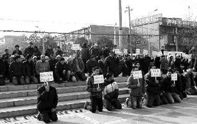 1月10日,130余名农民工在富平县人民广场集体下跪讨薪。