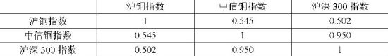 表1 沪铜指数、中信铜指数与沪深300指数相关性表
