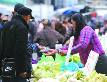 王海站在大白菜摊位前,利索地把两棵大白菜称斤、装袋,爱人在一旁收钱,来光顾的马大嫂们关心地问道:“你们以后搬去哪里做生意啊? ”