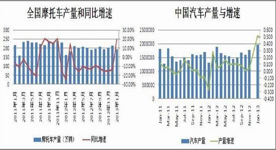 1月,全行业完成摩托车产销193.72万辆和200.29万辆,环比下降8.74%和5.87%,同比增长19.26%和16.63%;从需求端来看,增长态势固然早已是昨日黄花,但在经历了一段时间的滞涨后,短期受汽车热销带动,摩托车产销也有一定幅度的同比增长。