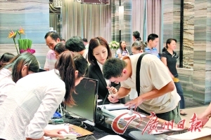 楼市新政落地版随时会出台,不少已经看准了心水单位的买家最近都加快了入市的步伐。 陈白帆 摄