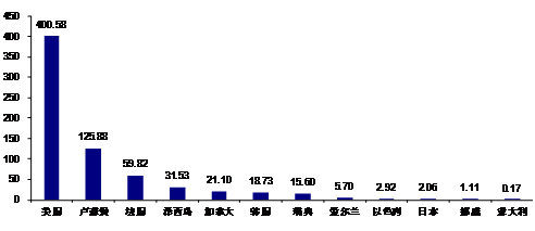 | 图5全球杠杆ETF各个注册地规模分布(单位:亿美元) |