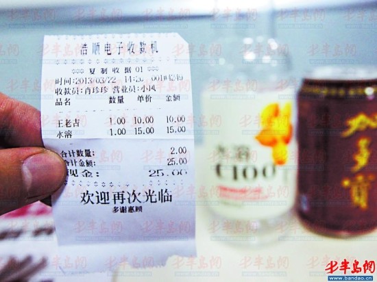 记者花25元买了一罐加多宝凉茶和一瓶水溶C100。