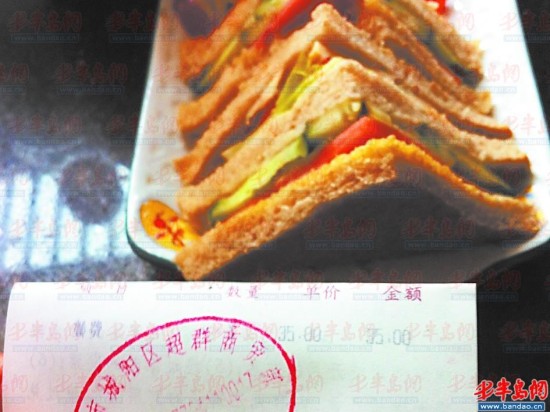 几乎所有的咖啡厅里都有三明治,而这些三明治做得非常简单,一块面包片切成4块,中间加上一片西红柿、一片黄瓜、一块生菜,最多再夹一片鸡肉、火腿或牛肉。在朗园咖啡,一份普通三明治售价39元,一份淋了奶油夹了点西红柿的长棍三明治,售价38元。而在二楼的耶豆咖啡,这里的菠萝牛肉三明治一份售价50元。