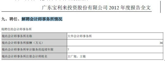 注:上为ST宝利来境内会计事务所报酬情况