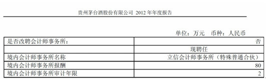 注:上为贵州茅台境内会计事务所报酬情况