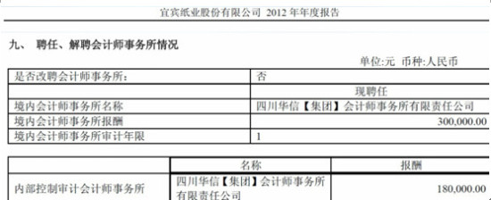 注:上为宜宾纸业境内会计事务所报酬情况