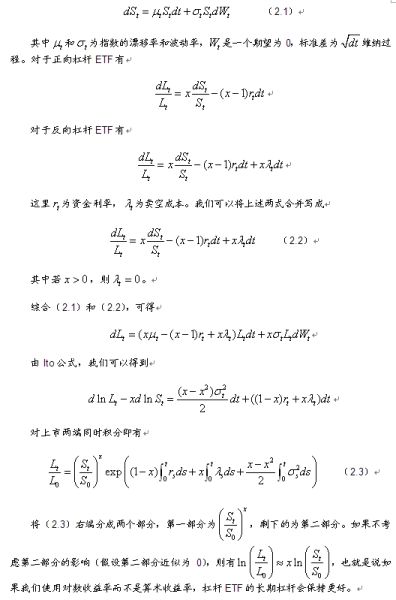 从上面的实证结果来看,我们可以得出一个大概的结论,似乎持有时间越长,杠杆偏离的情况越严重,相同的杠杆倍数下,反向杠杆ETF的杠杆偏离程度要大于正向杠杆ETF。实际上,我们可以从数学上推导出杠杆偏离的显式表达式,精确的描述长期持有杠杆ETF后收益与标的指数的杠杆倍收益的偏差大小。