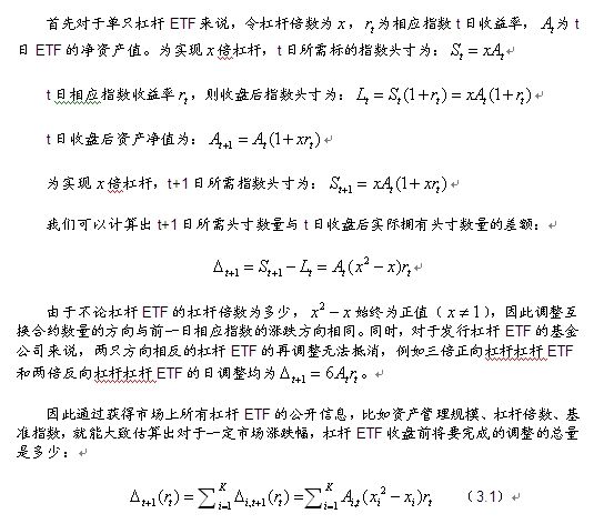 持有杠杆的ETF 100万元,日基准指数收益率,收盘后ETF份额总值万元。根据表达式可以算出,此时应减少ETF头寸5万元,于是卖出ETF份额获得现金5万元。