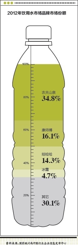 有了强大的数据分析能力做支持后,农夫山泉近年以30%-40%的年增长率,在饮用水方面快速超越了原先的三甲:娃哈哈、乐百氏和可口可乐。根据国家统计局公布的数据,饮用水领域的市场份额,农夫山泉、康师傅、娃哈哈、可口可乐的冰露,分别为34.8%、16.1%、14.3%、4.7%,农夫山泉几乎是另外三家之和。对于胡健来说,下一步他希望那些业务员搜集来的图像、视频资料可以被利用起来。